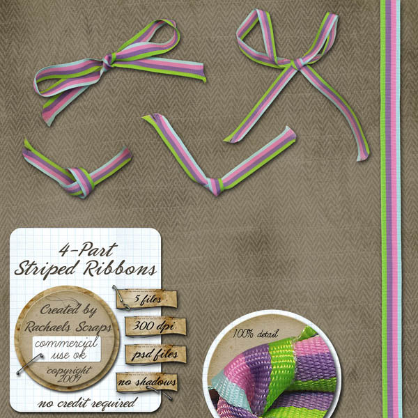 This set contains 5 digital images of real ribbons. Each comes in a separate layered psd file that has the stripes separated out in each layer, so you can recolor the stripes individually, quickly and easily!