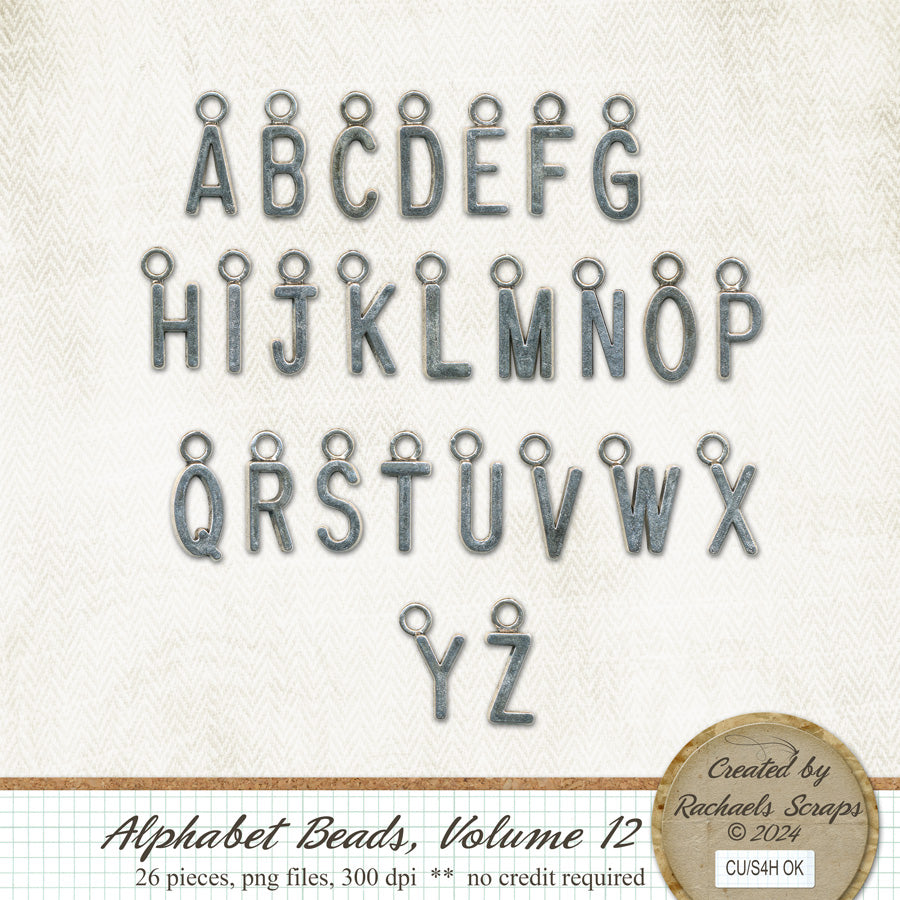This set contains 26 digital images of metal alphabet charms.