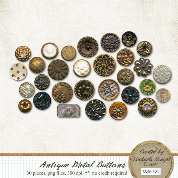 This set contains 30 digital images of real and extracted antique and vintage buttons.