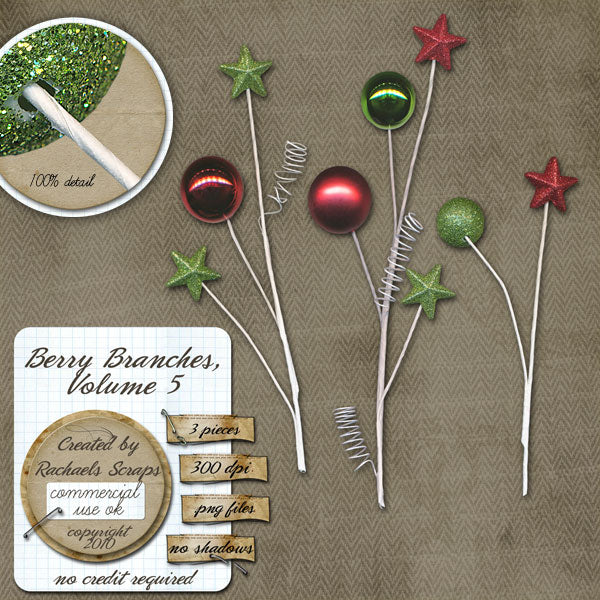 This set contains 3 digital images of Christmas themed berry branches.
