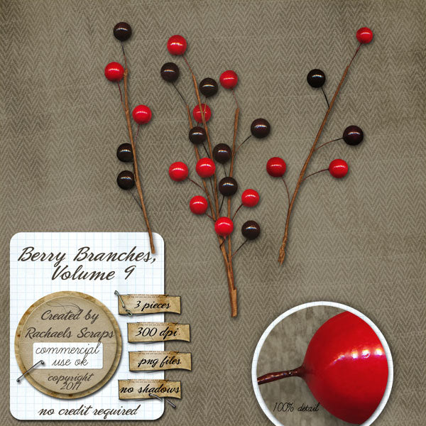 This set contains 3 digital images of Christmas themed berry branches.