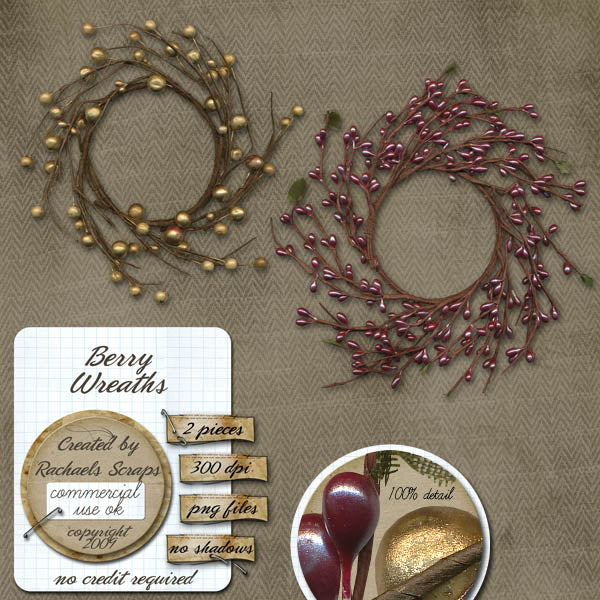 This set contains 2 digital images of Christmas berry wreaths.