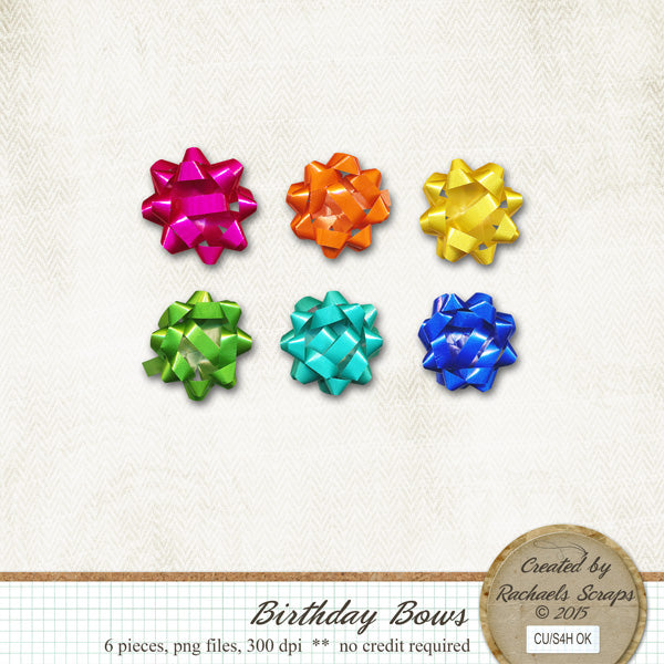 This set contains 6 digital images of colorful birthday bows.