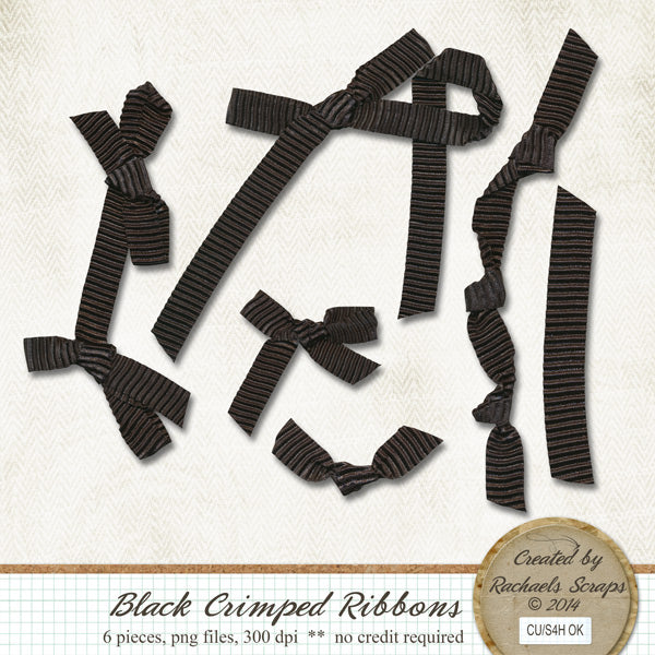 This set contains 6 digital images of bows made with black wavy ribbon.
