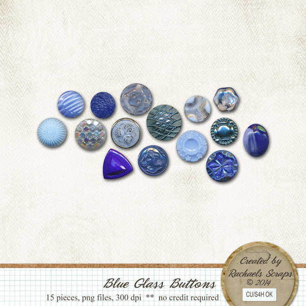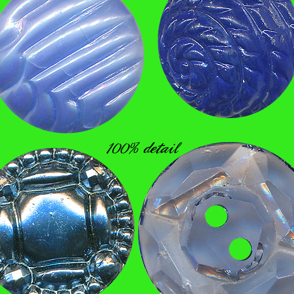 This set contains 15 digital images of real, antique glass buttons in blue and green color.