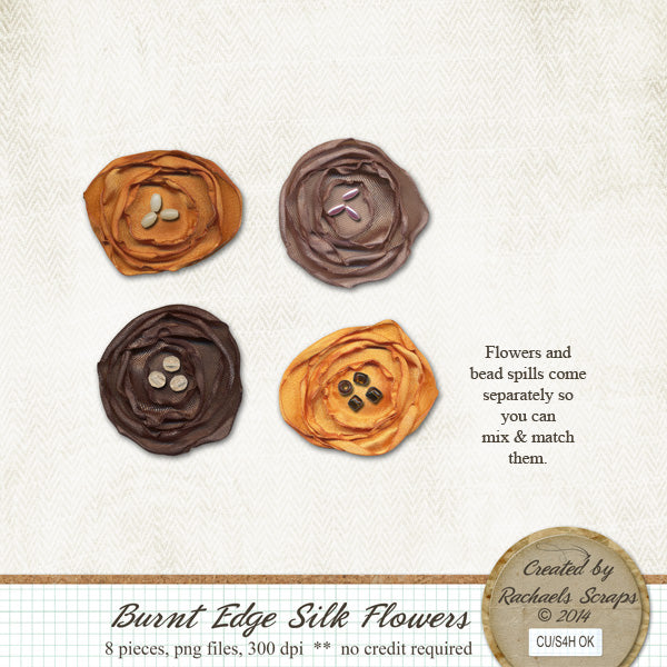 This set contains 8 digital images (four stacked fabric flowers and four sets of beads for the centers).