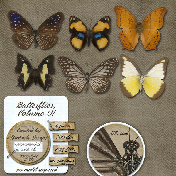 This set contains 6 digital images of real butterflies.