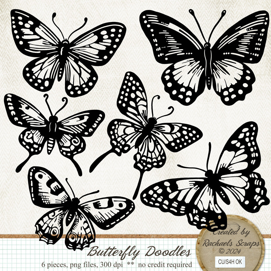 This set contains 6 doodles of beautiful butterflies. All were hand drawn by me.