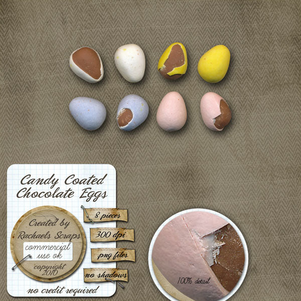 This set contains 8 digital images of candy coated chocolate eggs. They will be fun in an Easter or outdoors/garden themed project.