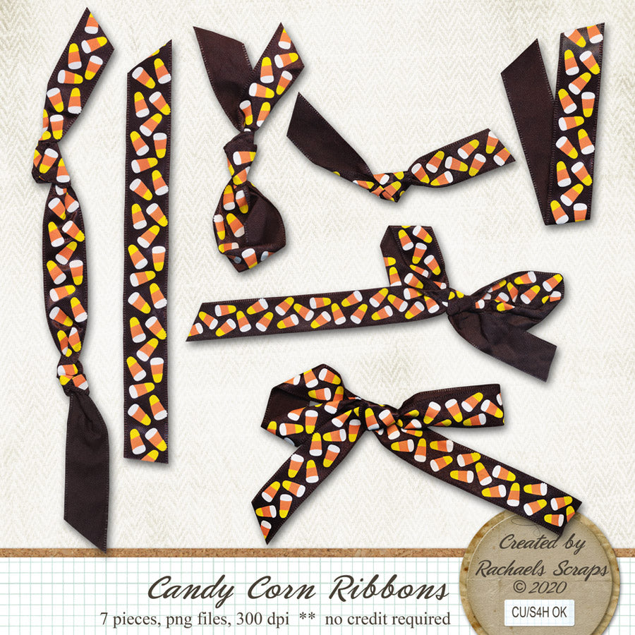 This set contains 7 digital images of candy corn Halloween print ribbons.