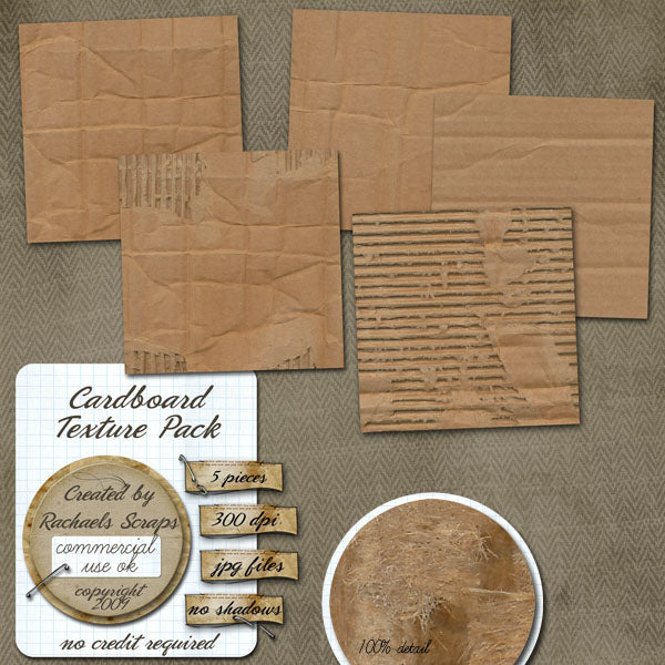 This set contains 5 full sized texture sheet images of real cardboard.