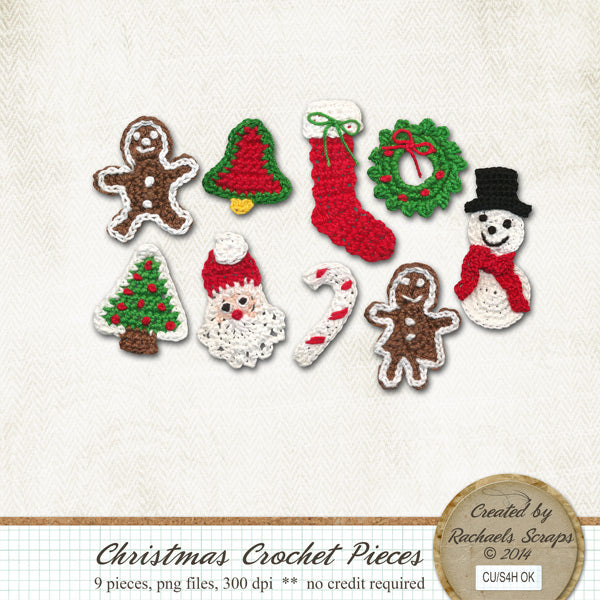 This set contains 9 digital images of Christmas themed crochet appliques.