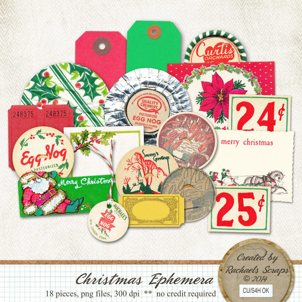 This set contains 18 digital images of vintage Christmas ephemera.