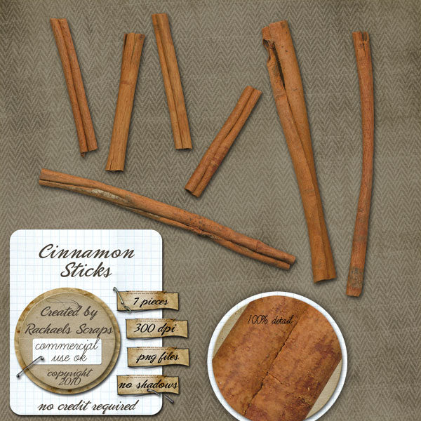 This set contains 7 digital images of real cinnamon sticks.