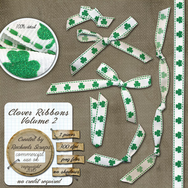 This set contains 7 digital images of real ribbons with a clover pattern.