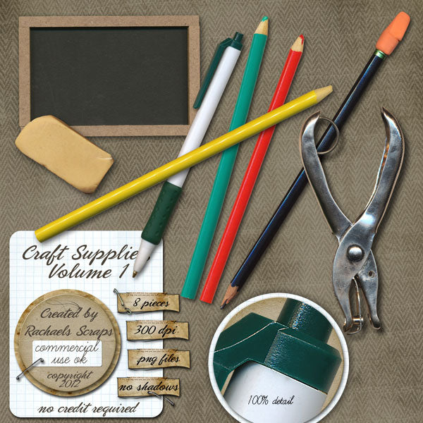 This set contains 8 digital school themed images. Includes a chalkboard, eraser, pencils, pens, and a hole punch.