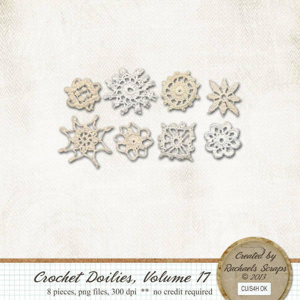 This set contains 8 digital images of vintage crocheted flowers and doilies.
