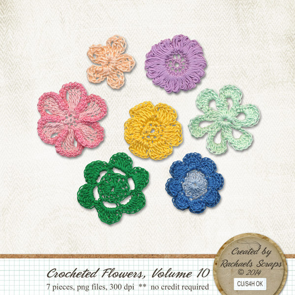 This set contains 7 digital images of real and extracted hand crocheted flowers.