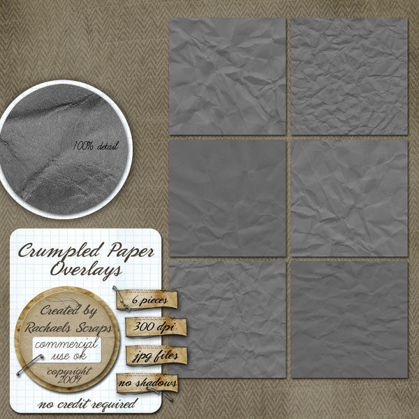 This set contains 6 full sized texture sheet images of crumpled paper textures.