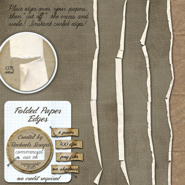 This set contains 4 digital images of paper edges. These will look great being added to the edges of papers, tags, frames, even photos! Each piece is 12" in length.