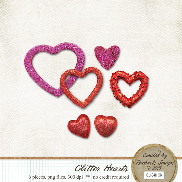 This set contains 6 digital images of glitter covered hearts, perfect for Valentine's Day.