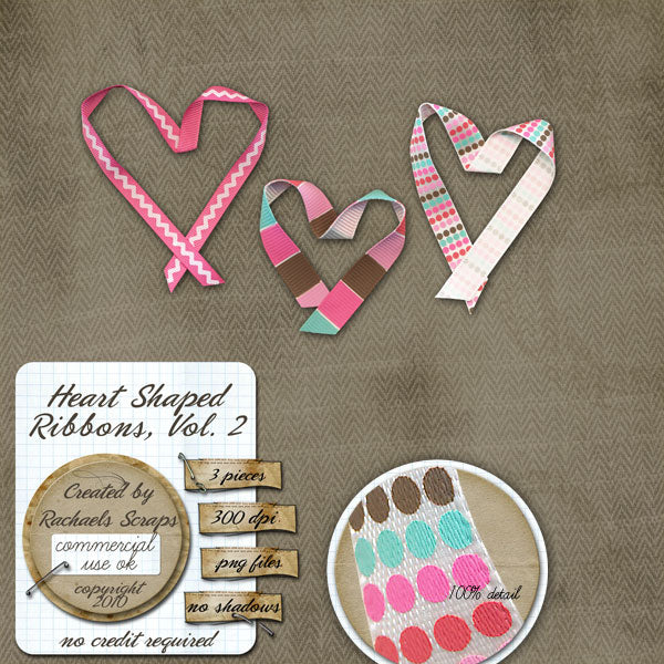 This set contains 3 digital images of ribbons formed into a heart shape.
