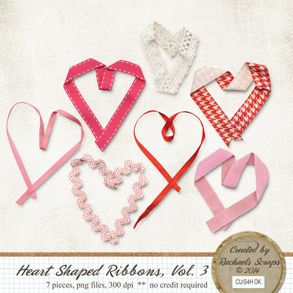 This set contains 7 digital images of ribbons formed into a heart shape.