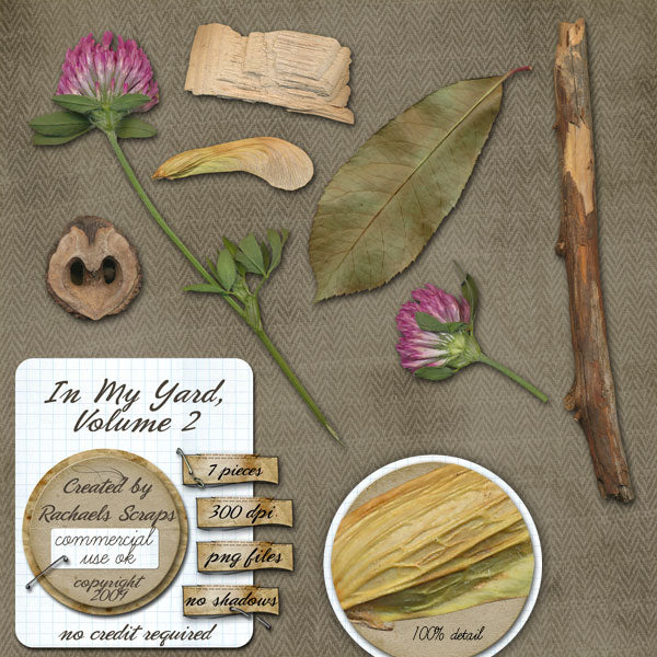 This set contains 7 digital images of a stick, bark, and plants from my yard and garden.
