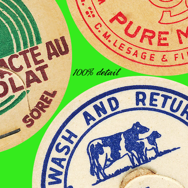 This set contains 23 digital images of vintage / antique milk caps.