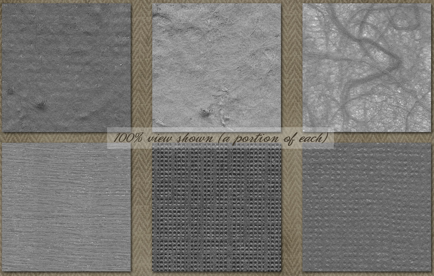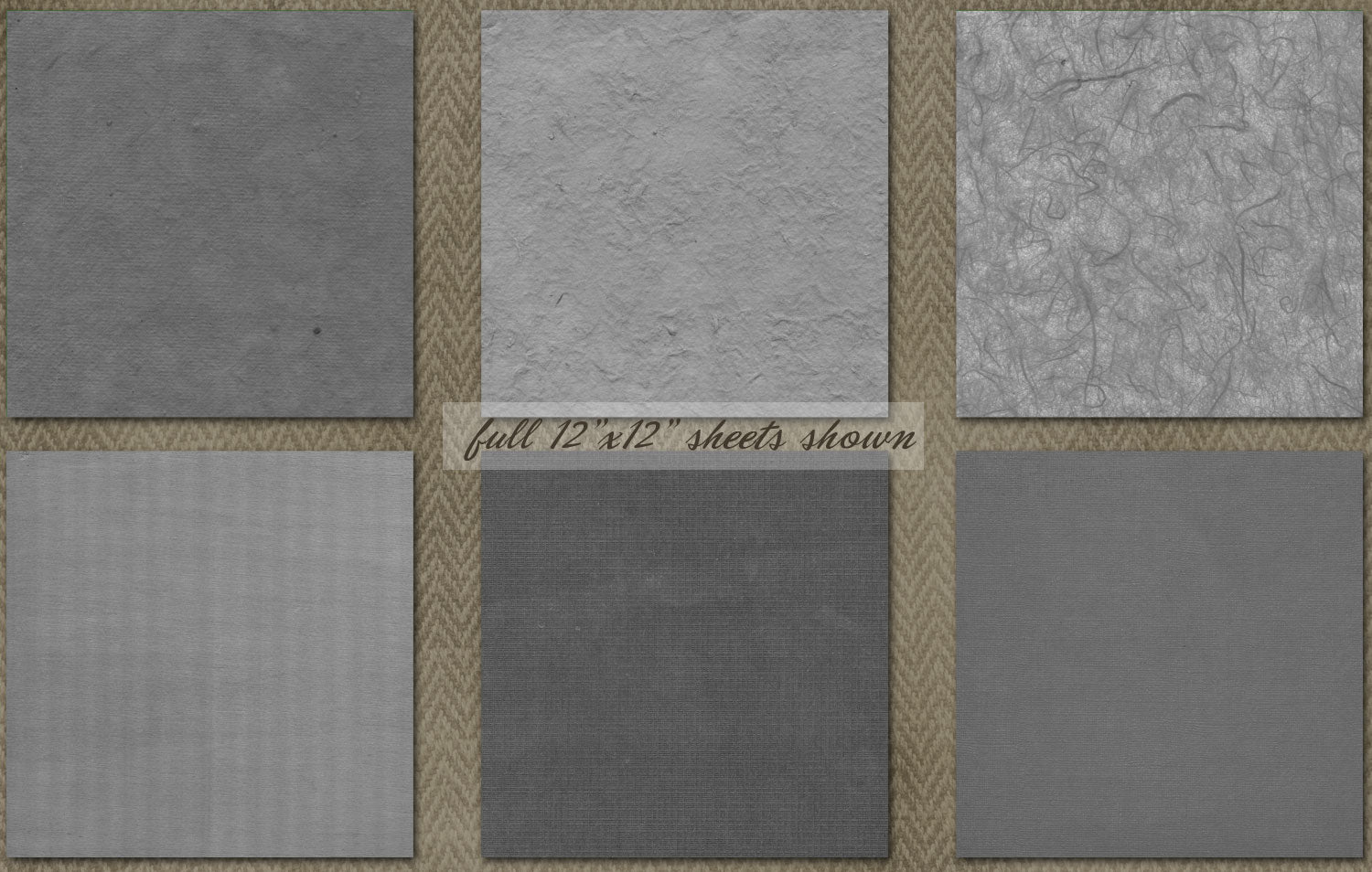 This set contains 6 full sized overlays of handmade style paper. They will make a great starting point for your papers, or help add more texture to project you've already started.