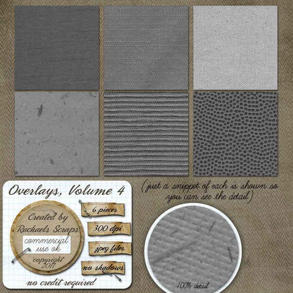 This set contains 6 full sized overlays. They will make a great starting point for your papers, or help add more texture to project you've already started.