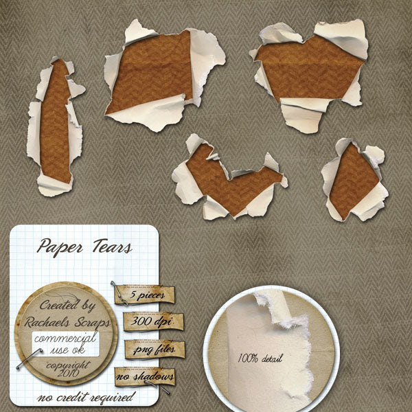 This set contains 5 digital images of paper tears. Thy will add a lot of dimension to your digital papers!