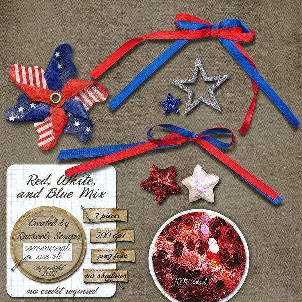 This set contains 7 digital images of red, white, and blue elements. They are perfect for Fourth of July and other American themed projects.