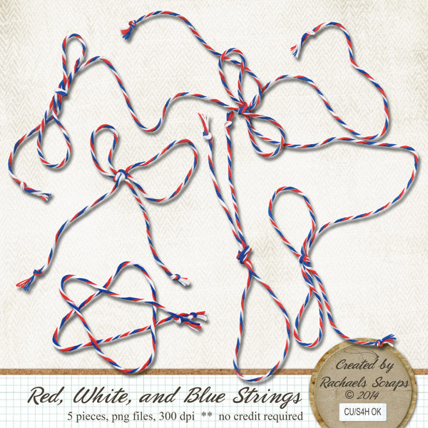 This set contains 5 digital images of red, white, and blue baker's twine strings.