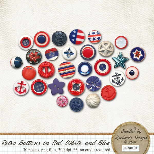 Retro Buttons in Red, White, & Blue