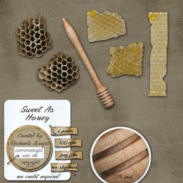 This set contains 6 digital images of honey and bee themed elements.