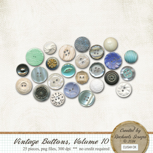 This set contains 25 digital images of vintage buttons.
