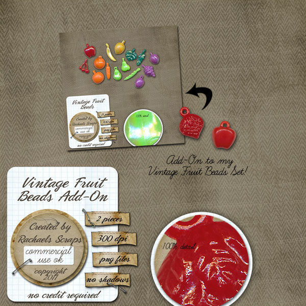 This set contains 2 digital images of real fruit shaped beads. These beads are an add on to my Vintage Fruit Beads set.