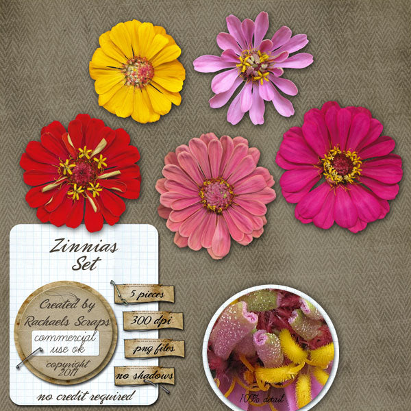 This set contains 5 digital images of real zinnia flowers.